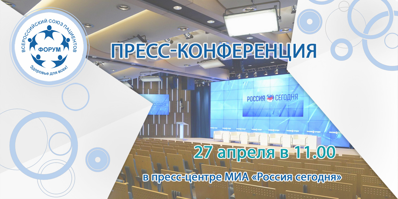 27 апреля в 11:00 в пресс-центре МИА «Россия сегодня» Всероссийский союз пациентов проведет пресс-конференцию